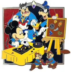 Pin features Chip and Dale , Donald Duck , Goofy , Mickey Mouse , Pete and Orange Bird