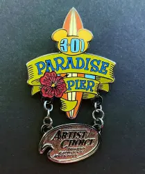 Paradise Pier - Tattoo Surf is a Limited Edition (LE) 2001 pin from the DCA Artist Choice (POTM) pin series. It was originally released on , 2001 and was available from Disneyland Resort .