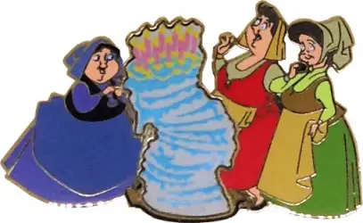 Pin features The Good Fairies (Flora, Fauna & Merryweather) from Sleeping Beauty