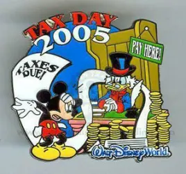 Tax Day 2005 is a Limited Edition (LE) 2500 pin from the Tax Day pin series. It was originally released on , 2005 and was available from Disney Store US .
