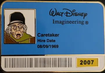 Caretaker ID Badge is a Limited Edition (LE) 300 pin from the I.D. Badge Series 1 pin series. It was originally released on , 2007 and was available from Walt Disney Imagineering .