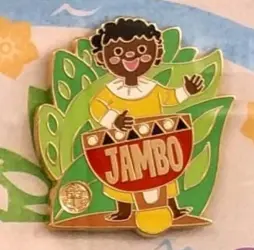 Jambo is a Limited Edition (LE) 100 pin in the A Smile Means Friendship to Everyone Framed Set — Full Set 9-pin set from the it's a small world 50th anniversary pin series. It was originally released on , 2016 and was available from Disneyland Resort .