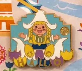 Hallo is a Limited Edition (LE) 100 pin in the A Smile Means Friendship to Everyone Framed Set — Full Set 9-pin set from the it's a small world 50th anniversary pin series. It was originally released on , 2016 and was available from Disneyland Resort .