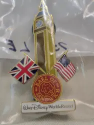 Big Ben - UK US Flags is a Limited Edition (LE) 750 pin from the Earl of Sandwich pin series. It is technically a Miscellaneous Non-Disney pin, so while being considered affiliated with Disney, it is not allowed to be traded in the Disney Parks.