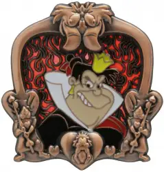 Queen of Hearts is a Limited Edition (LE) 400 pin from the Villainous Stained Glass Frames Series pin series. It was originally released on , 2014 and was available from Disney Studio Store Hollywood / Soda Fountain .