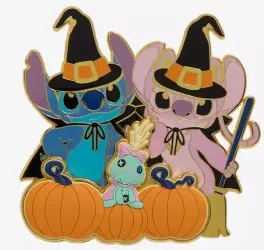 Angel & Stitch with Scrump - Halloween Pumpkin Spice Scented Pin is a Limited Edition (LE) 1000 pin from the BoxLunch - Lilo & Stitch pin series. It was originally released on , 2025 and was available from Loungefly .
