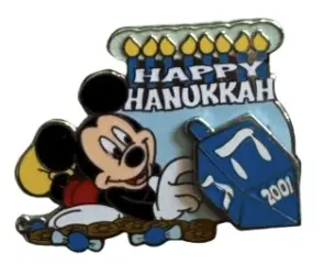 Happy Hanukkah Mickey and Dreidel 2001 is a Limited Edition (LE) 2400 pin from the Hanukkah pin series. It was originally released on , 2001 and was available from Disneyland Resort .