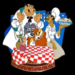 Lady and the Tramp is a Limited Edition (LE) 500 pin from the Storybook Pin pin series. It was originally released on , 2006 and was available from Disney Store US .
