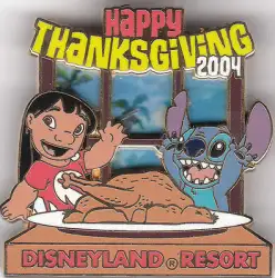 Lilo & Stitch is a Limited Edition (LE) 1500 pin from the Thanksgiving pin series. It was originally released on , 2004 and was available from Disneyland Resort .