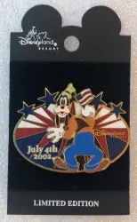 Goofy Holding Flag - Oval - Stars is a Limited Edition (LE) 2500 pin from the 4th of July/Independence Day pin series. It was originally released on , 2002 and was available from Disneyland Resort .