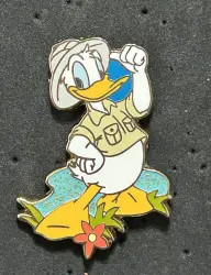 Donald Adventureland is a Limited Edition (LE) 1500 pin from the The Happiest Place to Work pin series. It was originally released on , 2005 and was available from Theme Park Cast Member Exclusive .