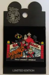 Incredible Family - WDW Entrance is a Limited Edition (LE) 3500 pin from the The Incredibles Opening Day pin series. It was originally released on , 2004 and was available from Walt Disney World .