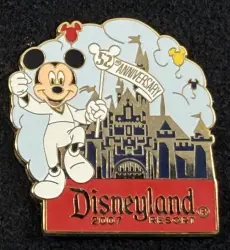 Disneyland 52nd Anniversary is a Limited Edition (LE) 1000 pin from the Disneyland Anniversaries pin series. It was originally released on , 2007 and was available from Disneyland Resort .