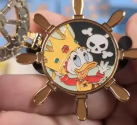 Huey is an Open Edition pin from the Mickey & Friends - Pirates of the Caribbean Hinged Ship's Wheel Mystery Collection pin series. It was originally released on , 2025 and was available from Shanghai Disney Resort .