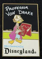 Professor von Drake Recommends Disneyland is an Open Edition pin from the Retro Disneyland Postcards pin series. It was originally released on , 2007 and was available from Disneyland Resort .