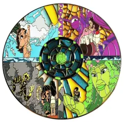 Moana is a Limited Edition (LE) 60 pin from the Fantasy Pin Series: Stained Glass Mosaics pin series. It was originally released on , 2018 and is an Unlicensed (Fantasy) pin, so therefore it is not allowed to be traded in the Disney Parks.