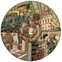 Ratatouille is a Limited Edition (LE) 60 pin from the Fantasy Pin Series: Stained Glass Mosaics pin series. It was originally released on , 2018 and is an Unlicensed (Fantasy) pin, so therefore it is not allowed to be traded in the Disney Parks.