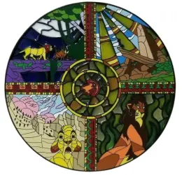 The Lion King is a Limited Edition (LE) 100 pin from the Fantasy Pin Series: Stained Glass Mosaics pin series. It was originally released on , 2017 and is an Unlicensed (Fantasy) pin, so therefore it is not allowed to be traded in the Disney Parks.
