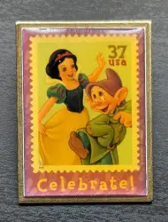 Snow White & Dopey USPS Celebrate is an Open Edition pin from the Art of Disney pin series. It was originally released on , 2004 and was available from an Officially Licensed Disney trading pin vendor (see description for more information).