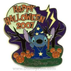 Stitch as a wizard is a Limited Edition (LE) 2000 pin from the Happy Halloween 2007 - Cute Characters pin series. It was originally released on , 2007 and was available from Walt Disney World .