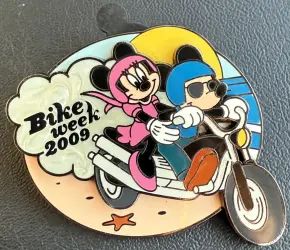 Mickey and Minnie is a Limited Edition (LE) 1500 pin from the Bike Week 2009 pin series. It was originally released on , 2009 and was available from Walt Disney World .