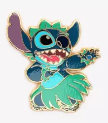 Stitch Dressed in Hula Skirt is an Open Edition pin from the Disney Lilo & Stitch Stitch Costumes Blind Box pin series. It was originally released on , 2025 and was available from Loungefly .