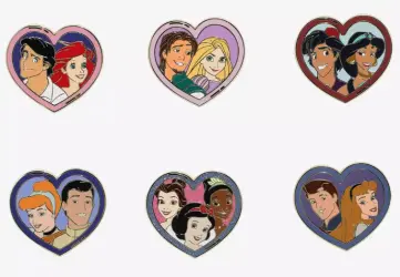 Complete Series of 6 is an Open Edition pin from the Princess Couples Heart Mystery Collection pin series. It was originally released on , 2025 and was available from Loungefly .