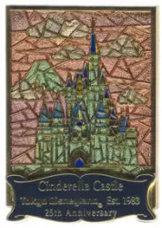 Tokyo Disneyland Cinderella Castle is a Limited Edition (LE) 500 pin from the Stained Glass - 2008 Pin of the Month - Cast Exclusive pin series. It was originally released on , 2008 and was available from Disneyland Resort .