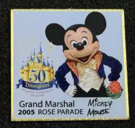 Disneyland 50th - Grand Marshall Mickey Mouse is a Limited Edition (LE) 5125 pin from the Rose Parade pin series. It was originally released on , 2004 and was available from an Officially Licensed Disney trading pin vendor (see description for more information).