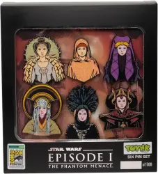 Queen Amidala 6 Pin Set is a Limited Edition (LE) 500 6-pin set from the Star Wars: Episode I - The Phantom Menace pin series. It was originally released on , 2024 and was available from an Officially Licensed Disney trading pin vendor (see description for more information).