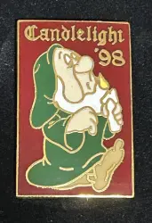 Candlelight '98 — Sneezy is a pin in the Fundraiser Boxed Set 8-pin set from the Disneyland Candlelight Processional - Cast Member Gifts pin series. It was originally released on , 1998 and was available from Disneyland Resort .