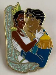 Pin features Tiana and Prince Naveen from The Princess and the Frog