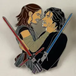 Rey & Kylo Ren is a Limited Edition (LE) 50 pin from the Fantasy Pin Series: Prelude to a Kiss pin series. It was originally released in March, 2020 and is an Unlicensed (Fantasy) pin, so therefore it is not allowed to be traded in the Disney Parks.