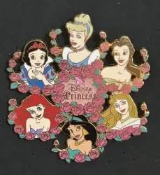 Pin features Snow White , Ariel , Aurora , Belle , Jasmine and Cinderella