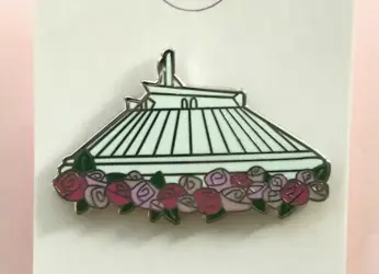 Floral Space Mountain Pin is a pin. It is an Unlicensed (Fantasy) pin, so therefore it is not allowed to be traded in the Disney Parks.