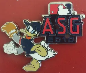 All Star Game (ASG) - Donald Pitching A Ball is an Open Edition pin from the Major League Baseball (MLB) pin series. It was originally released on , 2010 and was available from an Officially Licensed Disney trading pin vendor (see description for more information).