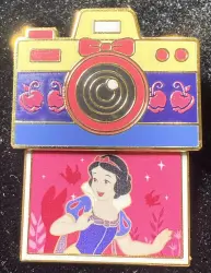 Snow White is an Open Edition pin from the BoxLunch - Princess Camera Slider Mystery Collection pin series. It was originally released on , 2025 and was available from an Officially Licensed Disney trading pin vendor (see description for more information).
