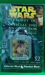 Luke Skywalker (#7 of 20) is a pin from the Courier Mail - 2005 Star Wars Episode III pin series. It was originally released 2005 and was available from an Officially Licensed Disney trading pin vendor (see description for more information).