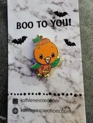 Boo to You Orange Bird Jack'o'lantern is a pin from the Fantasy Pin Series: KathlenesCreations pin series. It is an Unlicensed (Fantasy) pin, so therefore it is not allowed to be traded in the Disney Parks.