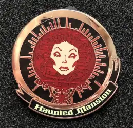 Glow-in-the-Dark Attraction Scenes Mystery Collection — Madame Leota is an Open Edition pin in the Glow-in-the-Dark Attraction Scenes Mystery Collection — Unopened Box 8-pin set from the The Haunted Mansion 50th Anniversary Event pin series. It was originally released on , 2019 and was available from Multiple Sources (WDW, DLR, etc.).
