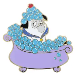 Disney Bathtime Pups Percy is a Limited Edition (LE) 300 pin from the Pink A La Mode (PALM) Exclusives pin series. It was originally released on , 2025 and was available from an Officially Licensed Disney trading pin vendor (see description for more information).