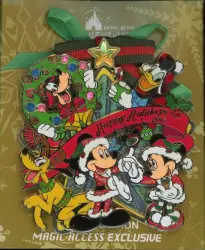 Happy Holidays Magic Access Fab 5 is a Limited Edition (LE) 500 pin from the Christmas 2016 pin series. It was originally released on , 2016 and was available from Hong Kong Disneyland .
