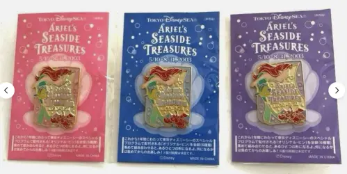 Ariel Seaside Treasures - 3 Pin Set is a Limited Release 3-pin set from the Ariel Seaside Treasures pin series. It was originally released on , 2003 and was available from Tokyo Disneyland Resort .