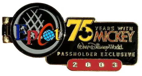 75 years of Mickey WDW Epcot 2003 Passholder Exclusive is a Limited Edition (LE) 7500 pin from the 75 Years with Mickey pin series. It was originally released 2003 and was available from Walt Disney World .