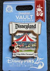 King Arthur Carrousel - Minnie Mouse is a Limited Edition (LE) 4000 pin from the Disneyland Vault Collection pin series. It was originally released on , 2025 and was available from Disneyland Resort .