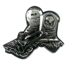 HEADSTONES WITH TRUMPET ONLY is a Limited Release pin from the Haunted Mansion Reveal/Conceal Mystery Bat Puzzle pin series. It was originally released on , 2017 and was available from Multiple Sources (WDW, DLR, etc.).