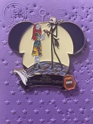 Pin features Jack Skellington and Sally from The Nightmare Before Christmas