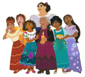 Pin features Abuela Alma , Dolores , Luisa , Isabela and Mirabel from Encanto