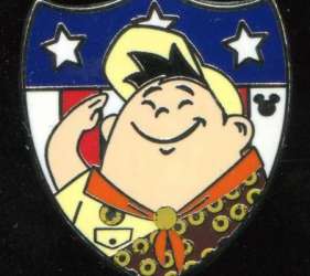 Russell is an Open Edition pin from the 2013 Hidden Mickey - Patriotic Characters pin series. It was originally released on , 2013 and was available from Walt Disney World .