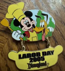 Mickey Mouse and Pluto Grilling - Dangle is a Limited Edition (LE) 1500 pin from the Labor Day pin series. It was originally released on , 2005 and was available from Disneyland Resort .